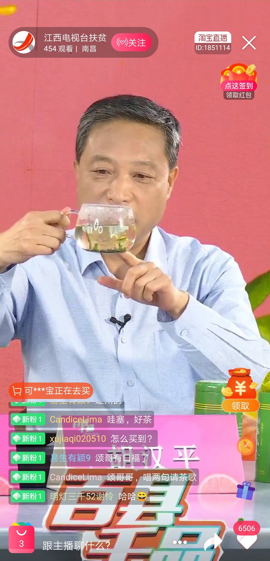 5月10日,由江西省农业农村厅、江西广播电视台、阿里巴巴集团联合开展的“百县千品”产业扶贫网上直播活动在全省各县(市、区)共同开播。省农业农村厅厅长胡汉平、副厅长刘光华、党委委员吴国昌3位厅领导作为嘉宾,由江西新闻联播主持人尹颂全程担任主播,为全国网友推荐狗牯脑茶、宁红茶、大米、小龙虾、牛肉等27个特色农产品,大部分都是江西省已经脱贫退出的贫困县农产品。